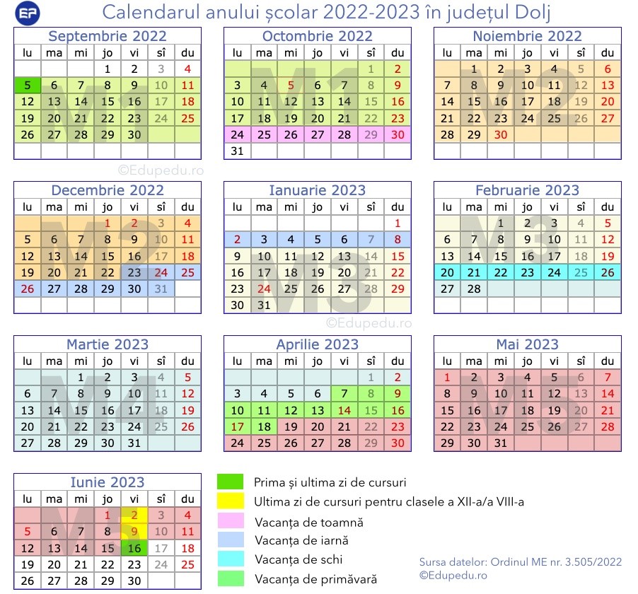 Calendarul anului școlar 2022-2023